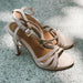 Sandalia alta, plataforma un centímetro y altura nueve y medio.