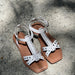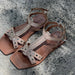 Sandalia planas tipo romanas con taches y punta cuadrada .