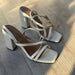 Sandalia alta con tacón ancho de siete y medio, capellada con tiras cruzadas